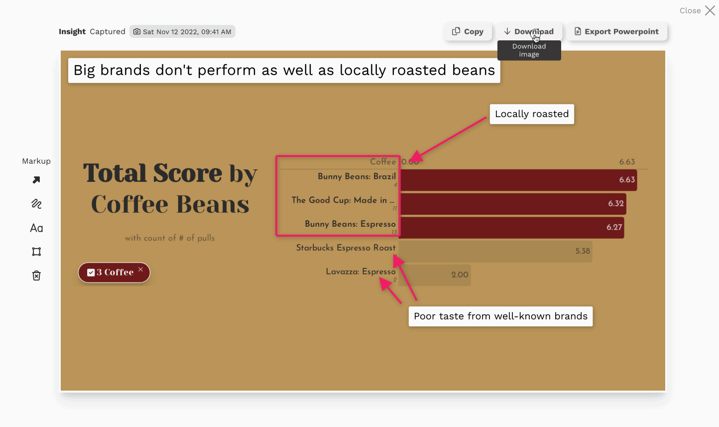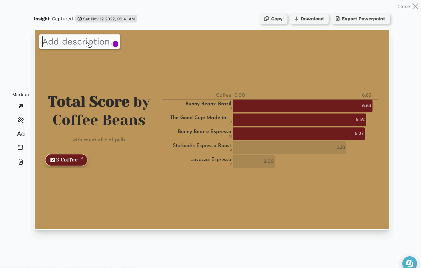 In Juicebox, the capture insight button is available on all the visualizations and instantly snapshots your insight.
